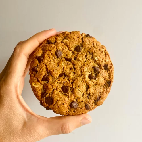 This single-serve vegan oatmeal chocolate chip cookie is soft, chewy, chocolatey, and comforting. It’s a little healthier than your average cookie thanks to oats, spelt flour, and natural sweeteners — but still indulgent enough to hit the spot when cravings strike.